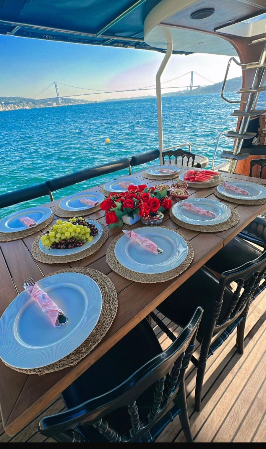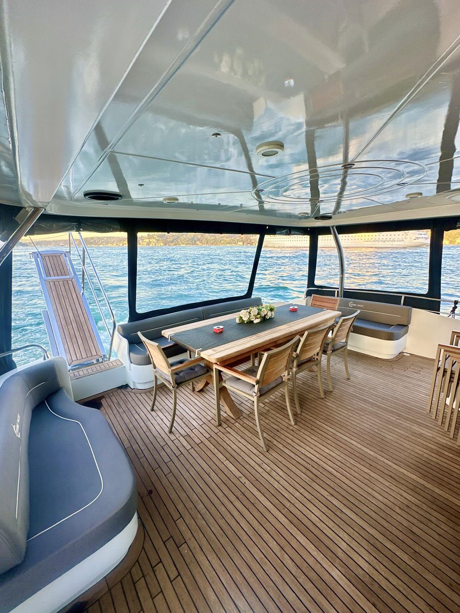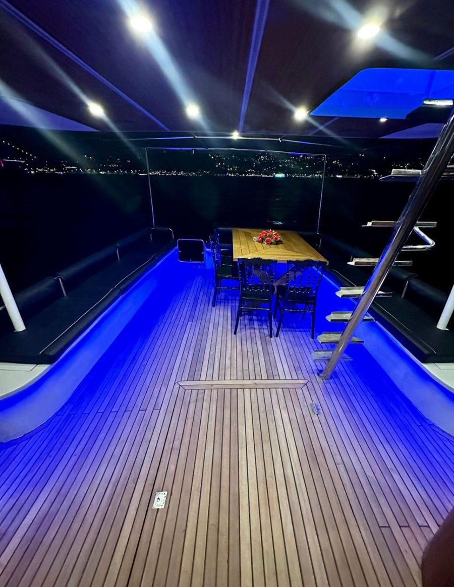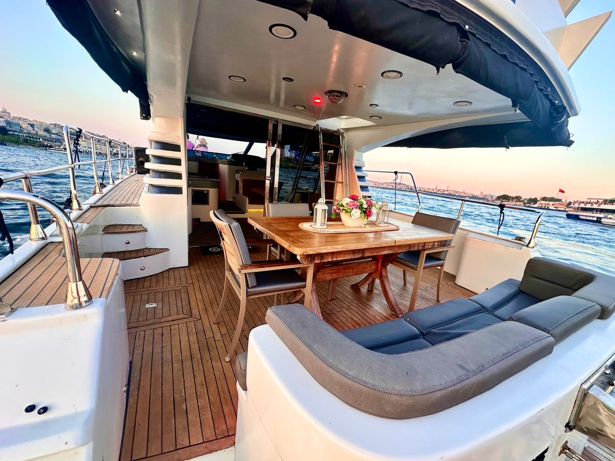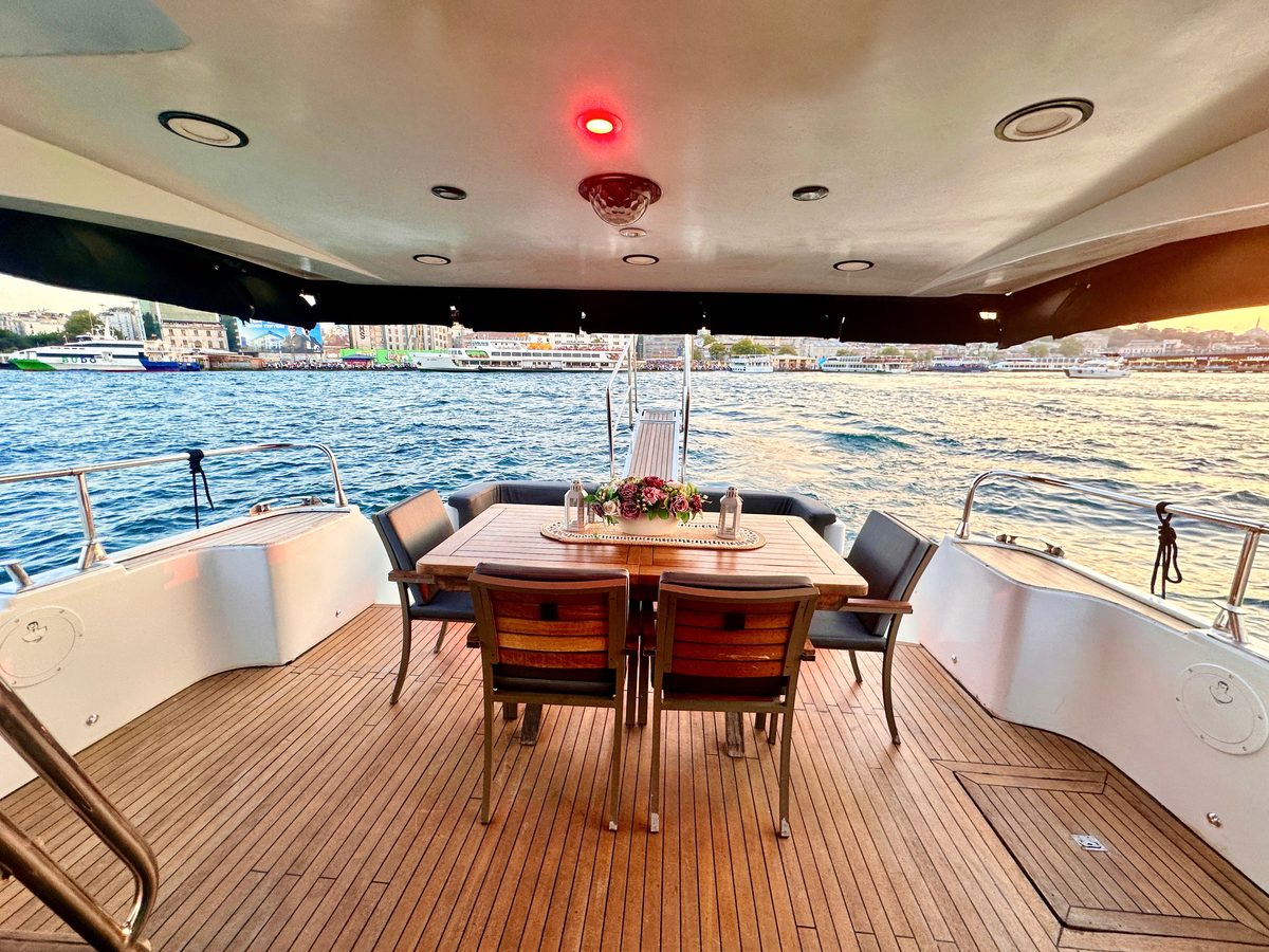 Genis guvertesi, modern ic tasarimi ve luks donanimiyla Dolphin 1, her turlu organizasyon icin ideal bir super yattir. Bogaz turlari, yemekli organizasyonlar, evlenme teklifi ve kurumsal etkinlikler icin mukemmel bir tercih.With its spacious deck, modern interior and luxury equipment, Dolphin 1 is an ideal superyacht for all events. Perfect for Bosphorus tours, dinner events, proposals and corporate occasions.
